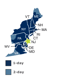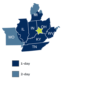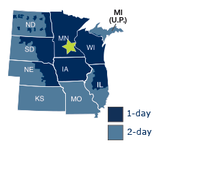*1 day available to IA, WI, Eastern MN, Eastern NE, & Western PA